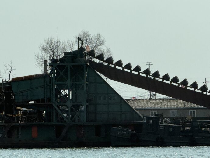 北朝鮮と中国の国境「鴨緑江」の遊覧船に乗って北朝鮮に近づく。
