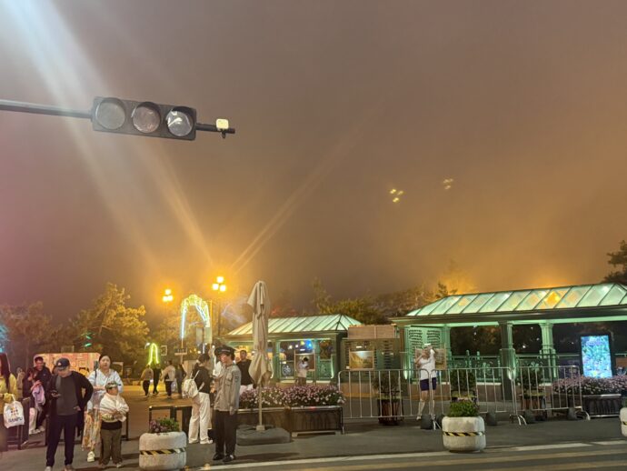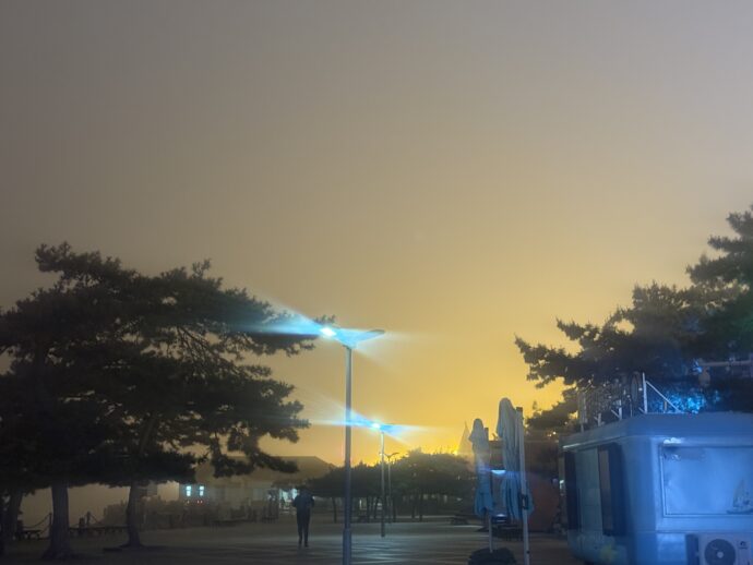 感想:濃霧の夜、ボンヤリと輝くライトアップが幻想的でステキだった