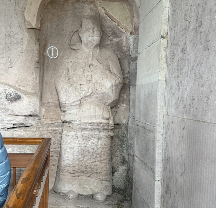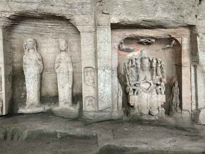 なかには、削る途中で放棄されたのか、損壊してしまったのか、彫りが浅くぼんやりしている石刻もありました。
