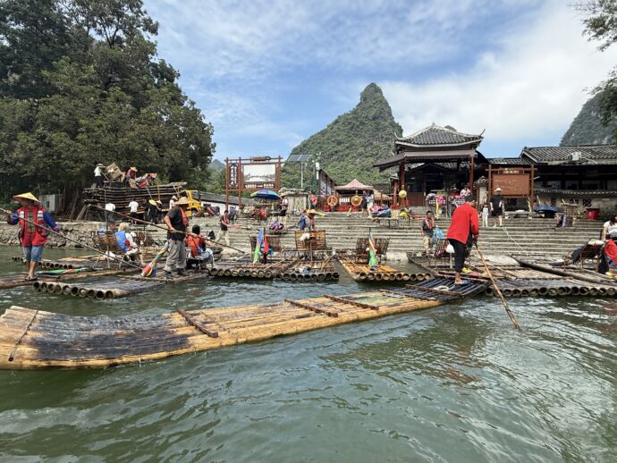 竹筏の埠頭(乗り場)は複数あり、コースや料金が異なります。それすら知らなかった。私の選択した「水厄底码头」コースは、大人気がゆえか、情緒にかけるものだった。遊園地のアトラクションに近い感じ。う〜ん。