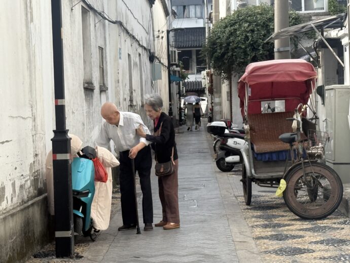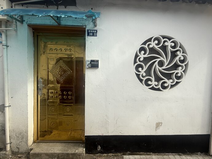 いきなりの公衆トイレ。中国の路地裏をさんぽしていると、公衆トイレに出くわすことが多い。昔はその区画の居住者で共同利用する文化だった名残かな。