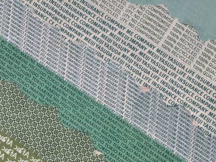 よくみるとパッケージのコラージュ。東京海上日動、明治安田生命・・・?