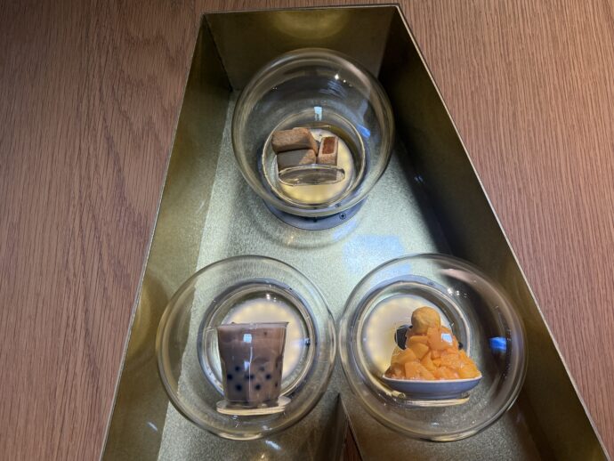 よくみると、透明カプセルのなかには、「台湾発祥」の名物ばかり。タピオカドリンクやマンゴーかき氷などのスイーツ模型が可愛い。