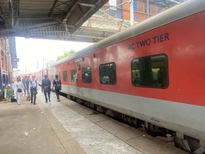 インドの鉄道は、一両が長いし、そしてめっちゃ車両数が多い。そうでなくちゃ、世界第2位の人口を捌けないのかもしれない。乗りたい車両が全然見つけられず。結局、最初に到着した「ホームの逆の端っこ」のほうだと判明。走る!