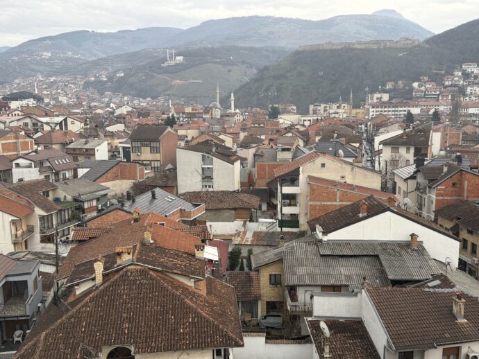 プリズレン地域考古学博物館では、併設の時計塔に登ると世界遺産「リェヴィシャの生神女教会」の全体像を眺めることができる眺望スポット。