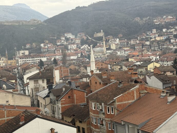 時計塔の最上部に到着。疲れた。窓からは、360度、プリズレンの町が見下ろせます。
