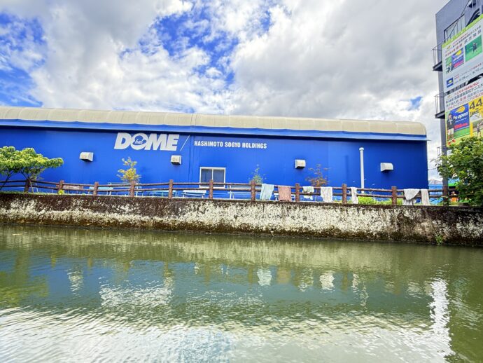 ブルーのドームは、全天候型のテニスコート。テニスの強豪校・柳川高校の施設なんだって。